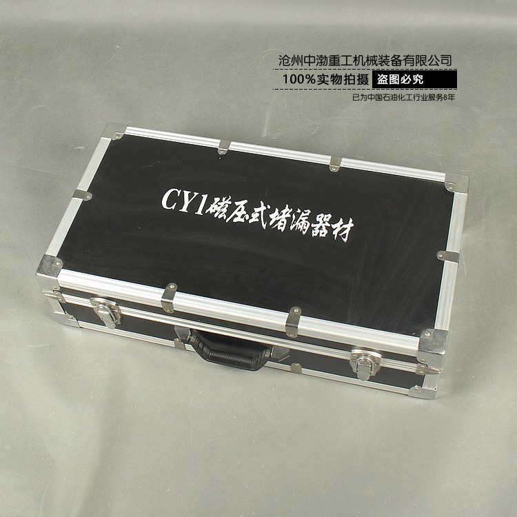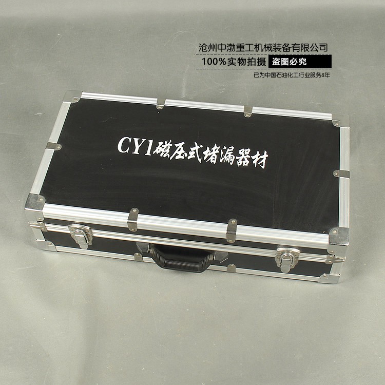 (1)打開工具箱,拿出磁壓堵漏器。