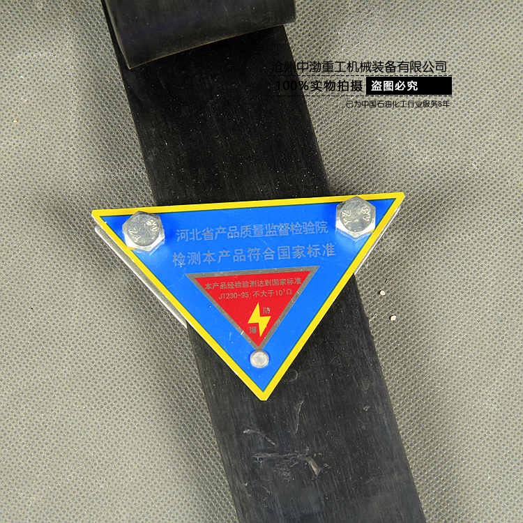 產(chǎn)品使用范圍:運(yùn)輸化學(xué)危險品的槽罐車輛其后廂大架子上安裝汽車導(dǎo)靜電橡膠拖地帶,防止車輛因靜電產(chǎn)生火災(zāi)爆炸事故。該產(chǎn)品制作工藝采用國家標(biāo)準(zhǔn)規(guī)定,長度為1.6米,寬度為5.5厘米,厚度為0.8厘米,采用工業(yè)輪胎橡膠和銅芯線,硫化機(jī)壓模成型,連接夾扣全部采用鋼板模具沖壓,產(chǎn)品美觀、耐用、質(zhì)量上佳.一次性安裝在車架子上,與地面接觸,確保安全可靠。