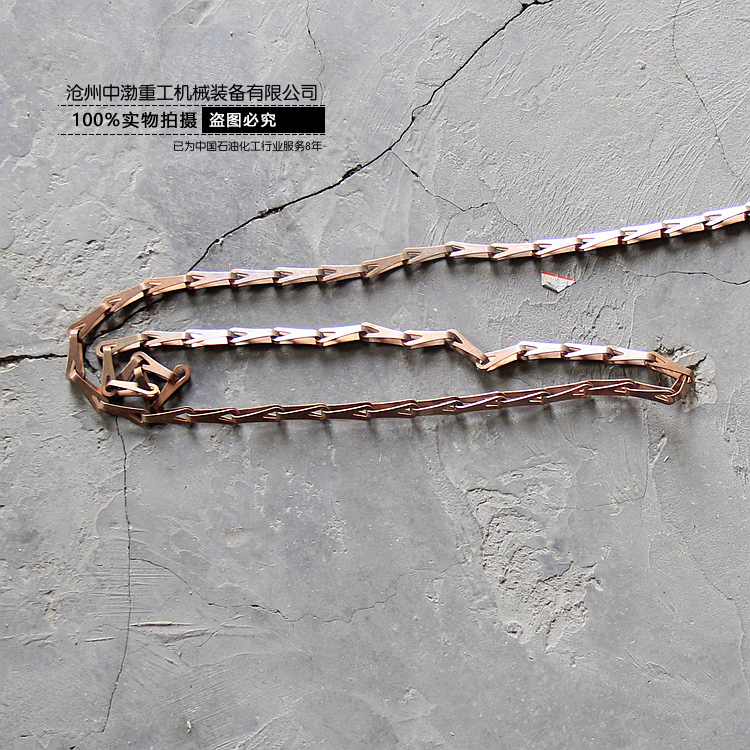 名稱:防爆銅鏈條 功能:適用于石油、化工、電子、鐵路、造船、冶金、鍋爐、礦山、采氣、發(fā)電、儲運、制藥、制氣等各種潛在火患和爆炸危險的環(huán)境中,也是機械制造和機械維修中必不可少的專用工具。 特點:使用時無火花產(chǎn)生,又稱之為無火花工具。