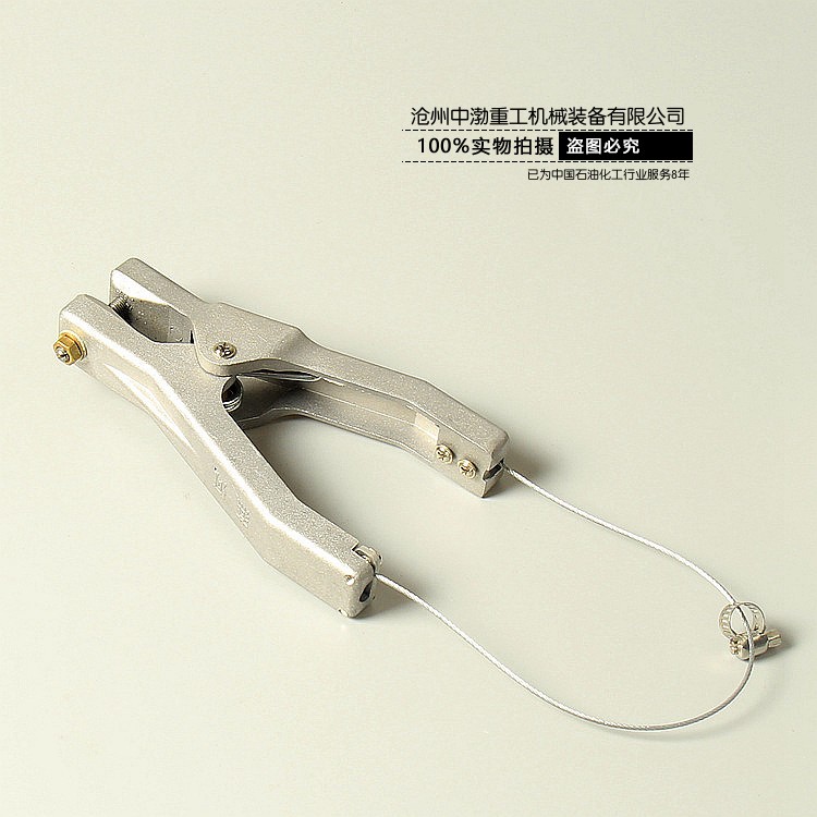 特點(diǎn):靜電夾是能用以導(dǎo)出上述器械上靜電的專用工具。通常與金屬接地樁(接地銅排)或接地網(wǎng)相連,夾體通過高強(qiáng)度恒力彈簧夾持在需導(dǎo)靜電物體上,并通過尖銳的破漆、透銹頂針穿透物體表層的油漆、污漬等絕緣層,使得物體上積聚的靜電能被實(shí)時(shí)導(dǎo)走,確保作業(yè)安全。靜電夾一般配備直線或彈簧電纜使用。