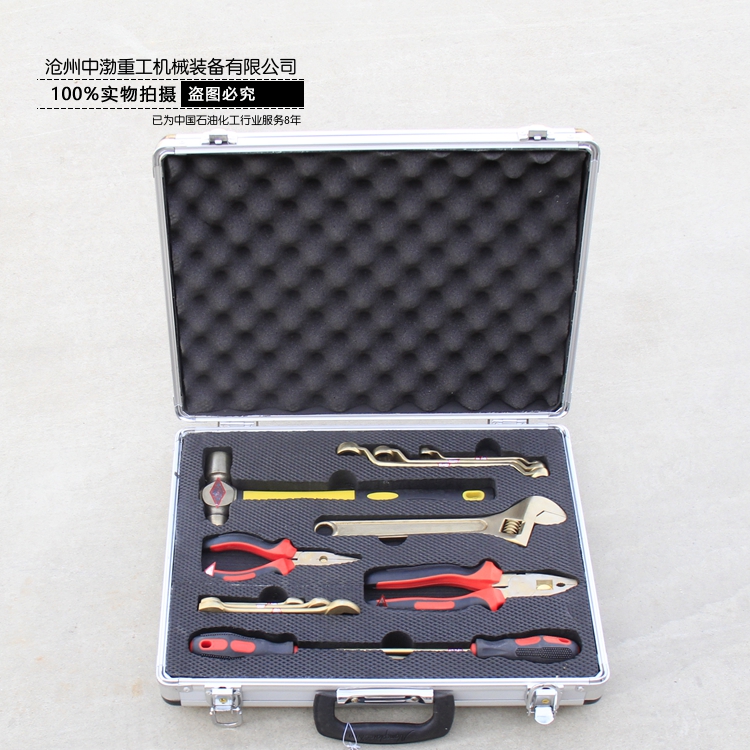 公司生產(chǎn)的防爆工具箱種類齊全,包括:加油站用組合工具箱、油庫用組合工具箱、天然氣用組合工具箱、礦山搶險用組合工具箱、檢維修用組合工具箱、成品油計量工具箱等。  工具箱規(guī)格:7件套、10件套、12件套、16件套、24件套、30件套、32件套、36件套、42件套、50件套、56件套、100件套等。公司還可以根據(jù)客戶的實(shí)際工作需要組合常用的防爆工具套裝。   公司生產(chǎn)的防爆工具有400余個系列近萬種規(guī)格。該產(chǎn)品能有效的防止工具與工作物相互摩擦、撞擊時產(chǎn)生的可燃性爆炸,確保財產(chǎn)和人身安全。廣泛用于石油、化工、礦山、防恐怖、防磁場、煤礦、采氣、油氣管道、發(fā)電、冶金、航空、儲運(yùn)、制藥、制氣、塑料、化纖、皮革、煙火、爆竹等行業(yè)。