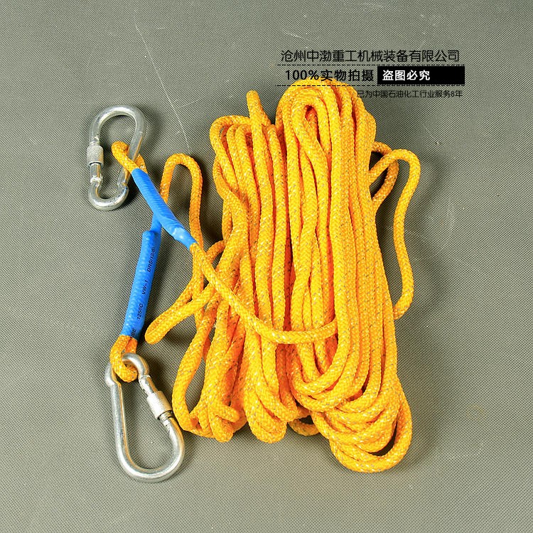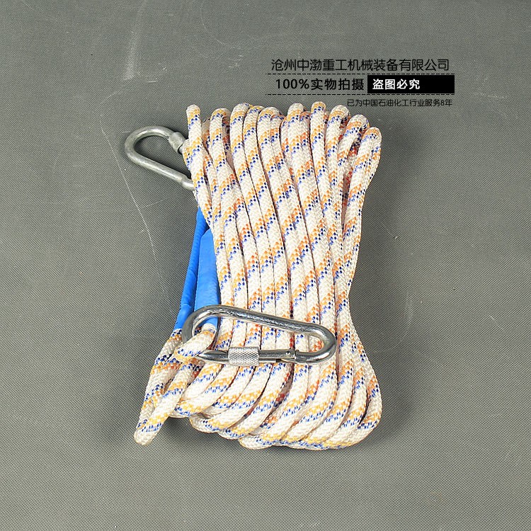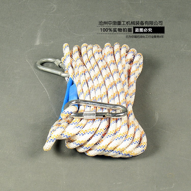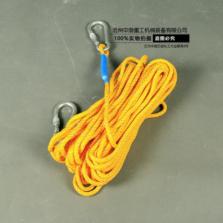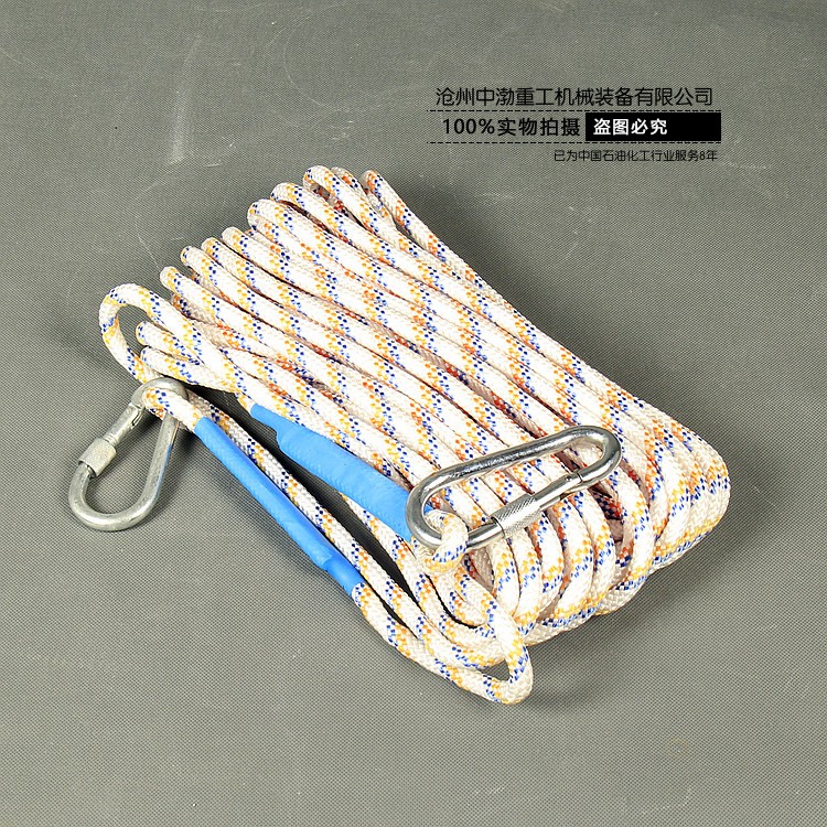 目前使用的救生繩主要是精制麻繩,繩的直徑為6毫米~14毫米,長(zhǎng)度為15米~30米,消防員用耐火救生繩通常用2.6mm航空鋼絲包芯。通常將直徑小的救生繩稱為拋繩、引繩或標(biāo)繩,將直徑大的救生繩稱為安全繩。