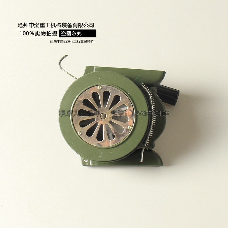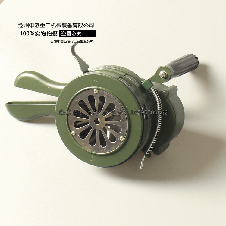 手搖警報(bào)器無需電源,可 以在無電源支持的都場所提供一種有效的報(bào)警。只需通過人工用手順時(shí)針方向搖動手柄,速度達(dá)到初級(50-80轉(zhuǎn)/分)就可達(dá)到理想的報(bào)警效果,發(fā)出的聲音 尖銳,震撼力大、穿透力強(qiáng)。警報(bào)聲音大小取決于手柄搖動的速度,新款手搖警報(bào)在音窗口設(shè)置檔板快門機(jī)制,可以迅速關(guān)閉音窗口,阻斷聲音,產(chǎn)生不同的信號。 手搖警報(bào)器體積小、重量輕、便于攜帶、安裝方便,不需要任何工具。只需0.15平方米的面積和人站立的地方就可以正常操作 了,流動性作業(yè)非常強(qiáng)。民防、部隊(duì)、看守所、監(jiān)獄、礦山、機(jī)場、草場、油庫、倉庫、賓館、酒店等企業(yè)單位在發(fā)生危急情況下使用的一種理想報(bào)警設(shè)備。