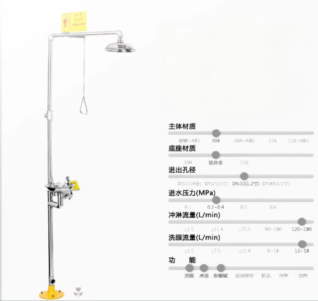 洗眼器是當發(fā)生有毒有害物質(zhì)(如化學(xué)液體等)噴濺到工作人員身體、臉、眼或發(fā)生火災(zāi)引起工作人員衣物著火時,采用的一種迅速將危害降到低的有效的安全防護用品。在石油、化工、半導(dǎo)體工業(yè)、醫(yī)藥制造業(yè)和有危險物品暴露的場所,得到廣泛應(yīng)用