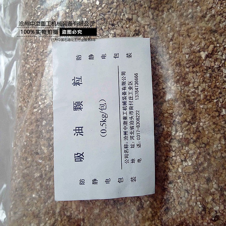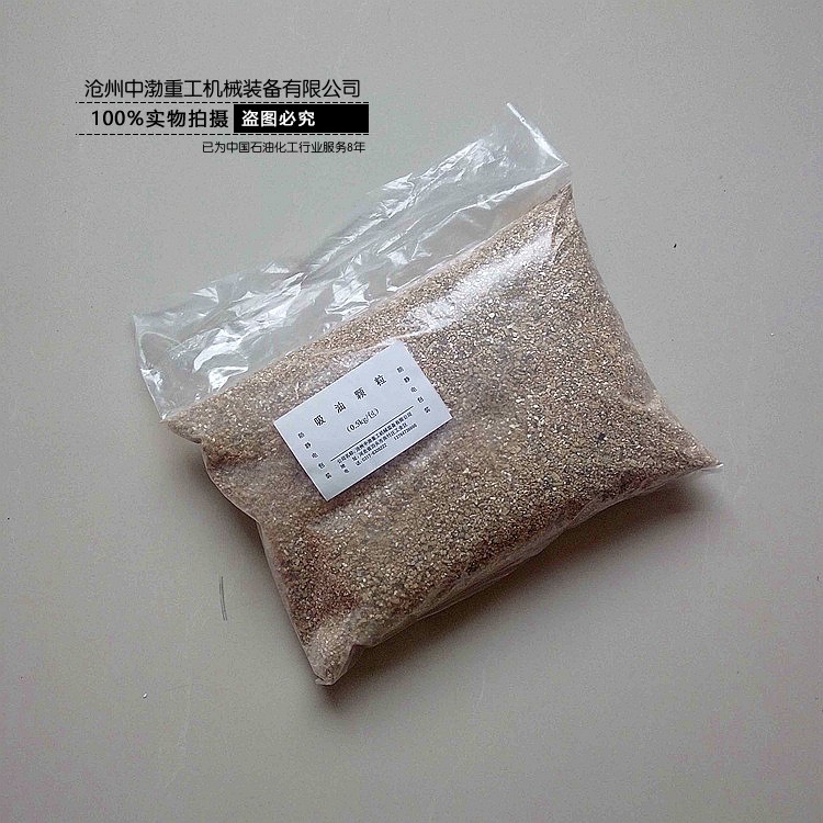 吸附顆粒顆粒內(nèi)部呈多微孔狀結(jié)構(gòu),對(duì)柴油、汽油、機(jī)油、二號(hào)浮選油、甲苯、二甲苯、煤油、硝苯、甲醛、甲醇、乙醇等泄漏污染物具有很強(qiáng)的吸附能力,能吸附相當(dāng)于其重量6倍的污染物液體(每公斤吸液顆??晌郊s5-6公斤的油類及化學(xué)液體),為陸上及海上油類泄漏污染應(yīng)急吸液處理提供了一種成本低廉、環(huán)保的清理方案。