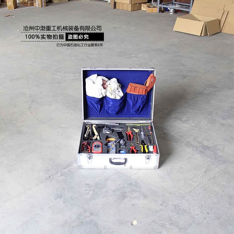 產(chǎn)品說明:配電室防爆工具箱為本司為電廠,石油、石化等企業(yè)配置的防爆型工具箱,內(nèi)置多種鋁青銅材質(zhì)防爆工具及多種電工作業(yè)用品,如:絕緣手套、鉗形電流表、安全帶、萬能表等;箱體為便攜式設計,便于攜帶,造型美觀。